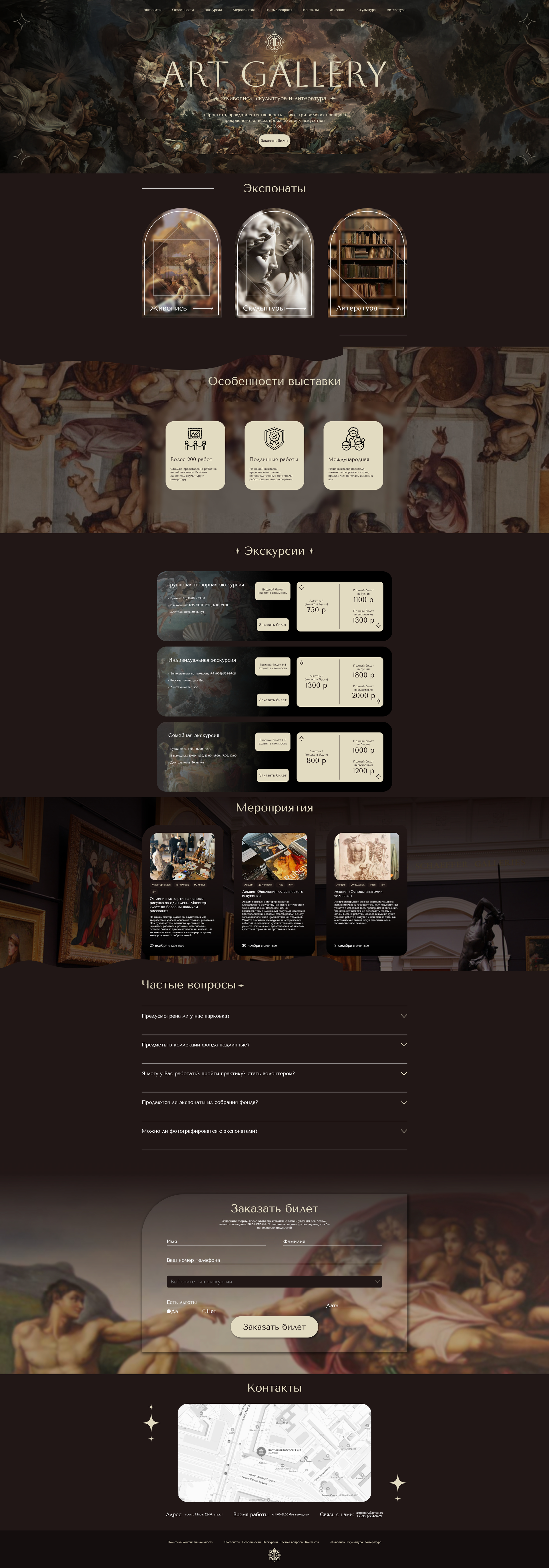 Галерея современного искусства с адаптивной галереей и интерактивным просмотром работ. Плавные анимации и оптимизированная загрузка изображений.
